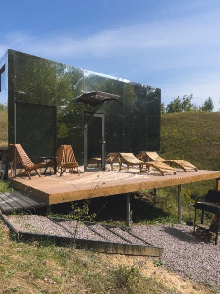 das Tiny Komforthotel BOTAN spiegelt diese Tiefe in seiner Spiegelfassade wider, sodass Sie die lebendigen Bilder der Künstlerin Natur hautnah erleben können